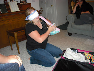 Wednesday night Aug. 3rd we had Courtney's bridal shower! First, Jill and Amanda called Preston and asked him questions about Courtney to see how well they know each other. For every wrong answer either one gave, Courtney had to stick a marshmallow in her mouth! It was hilarious to see her cheeks get so full!